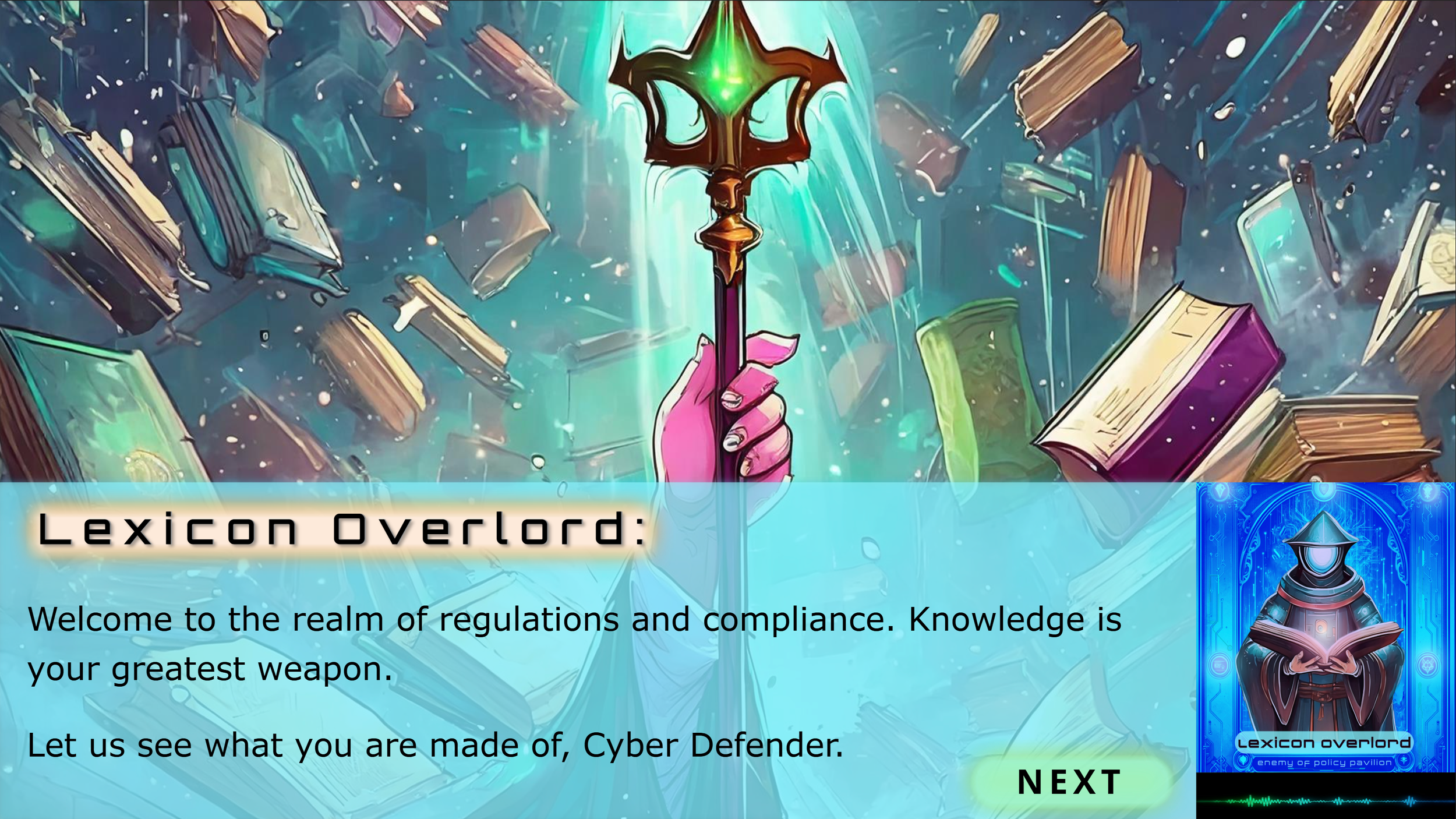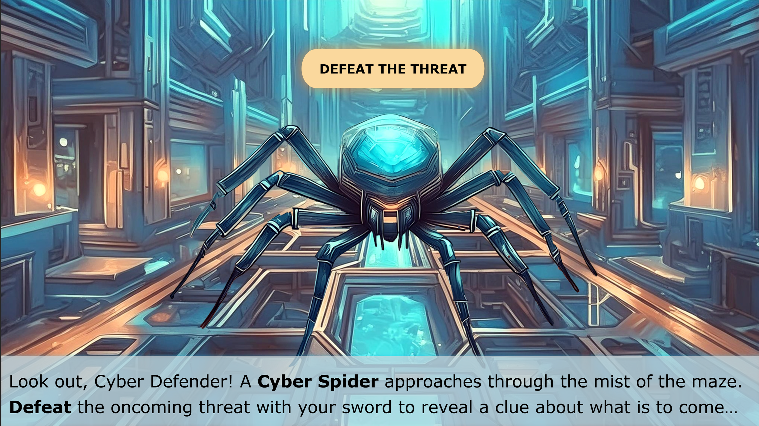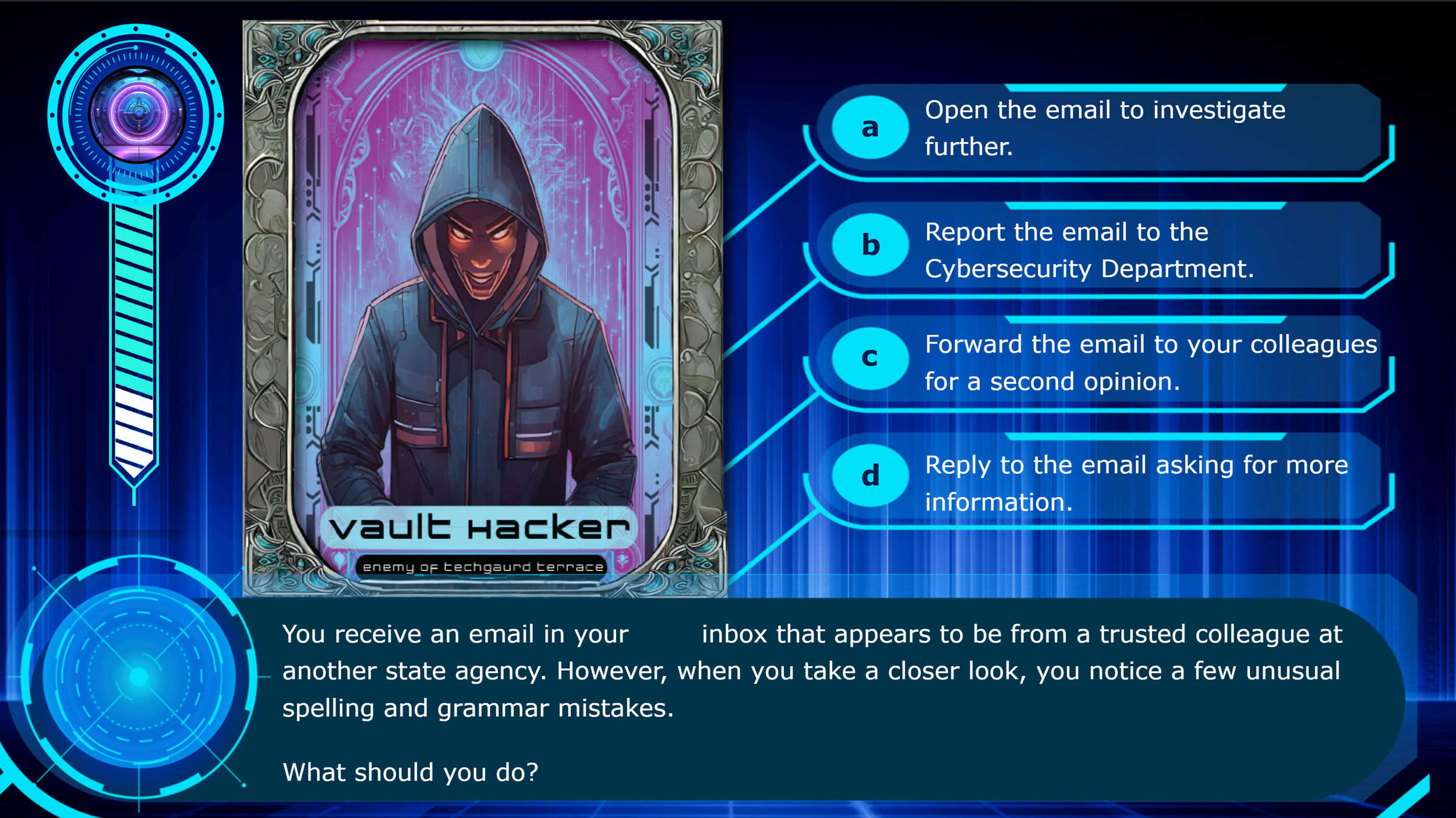 A gamified e-learning experience designed to engage learners in cybersecurity best practices and essential knowledge through interactive challenges and scenario-based gameplay.